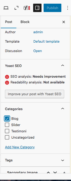 Klik tombol Publish untuk menerbitkan posting ke situs Anda.