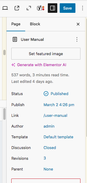 Atur atribut halaman seperti Parent atau Template (jika tema mendukung).