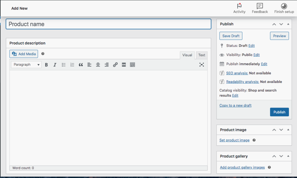 Di sidebar dashboard, pilih Products dan klik Add New.