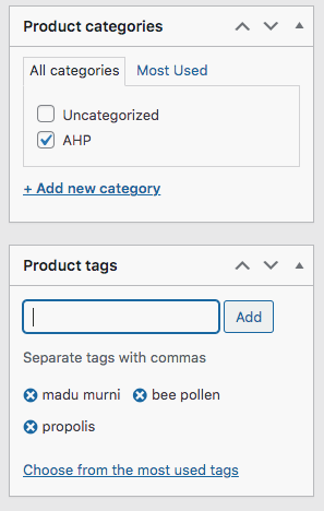 Pilih kategori dan tag produk untuk memudahkan pencarian di situs.