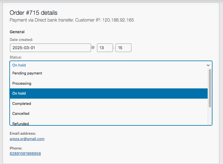 Jika pembayaran sudah diterima dan pesanan siap diproses, ubah status pesanan menjadi Processing.