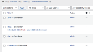 Pada daftar Pages, cari nama Pages yang ada label "Elementor"