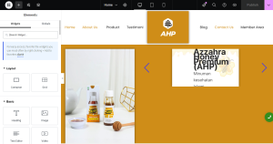 Page Editor terbagi 2 sisi kiri dan kanan. Untuk sisi kiri berisikan element (widget). Sisi sebelah kanan Editor untuk custom sebuah halaman.