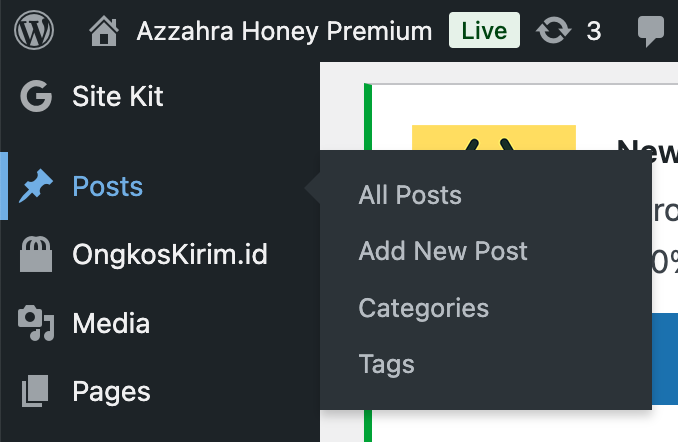 Di sidebar kiri dashboard, klik menu Posts dan pilih Add New.